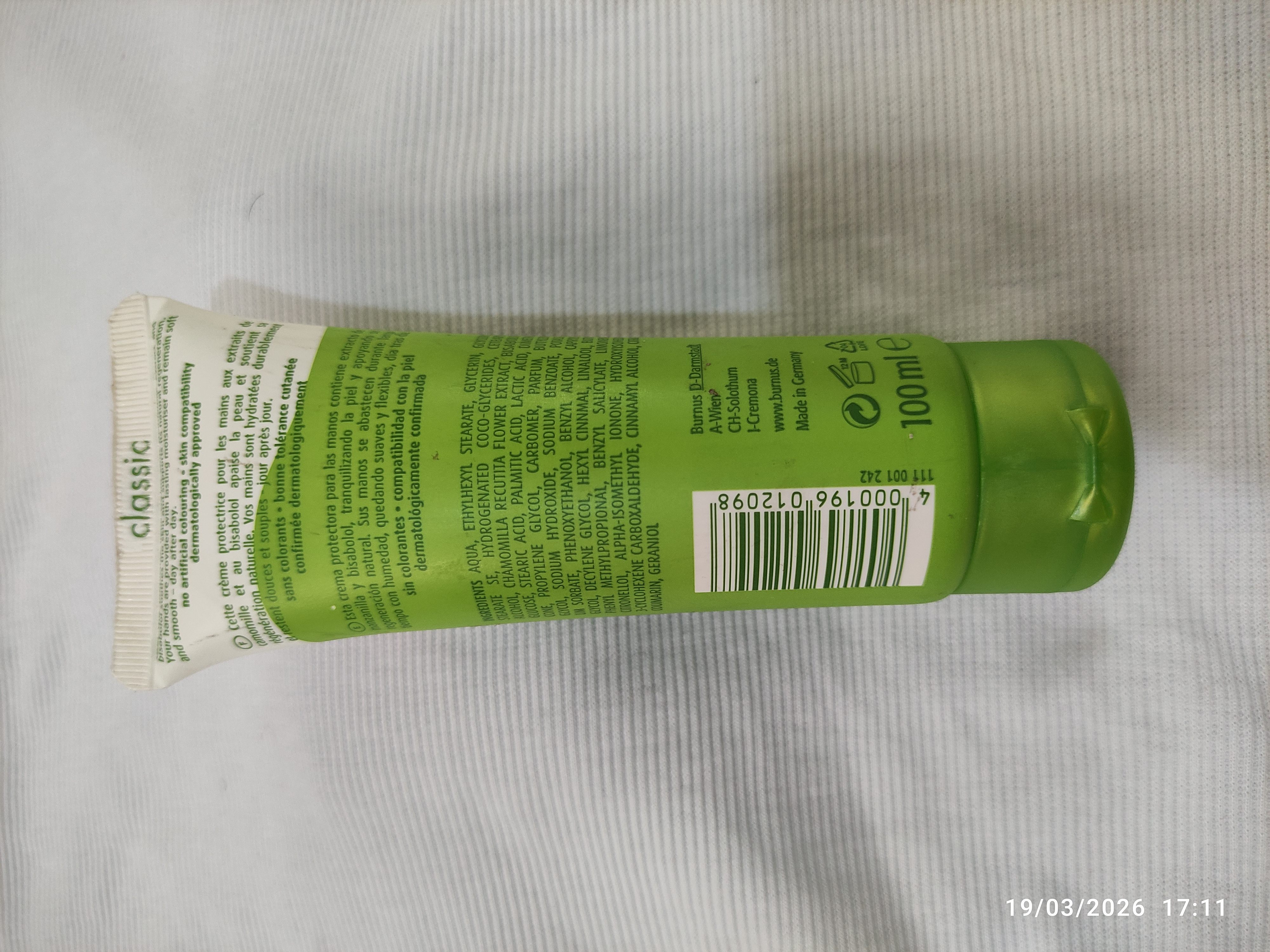کرم دست و صورت ۱۰۰m دارای بارکد
